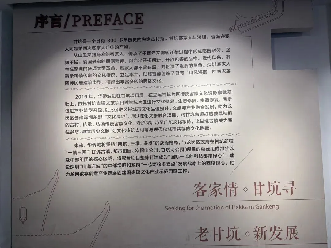 元月2日这天,我们自池州九华山机场乘机抵达深圳宝安机场,出港后转乘地铁到龙岗,入住平湖广弘中心全季酒店。一千多公里路程,耗时虽久,顺水顺风。点个外卖吃饱吃好,睡到天黑起床,开启我们此行的主责主业——帮闺女租房。安居才能乐业嘛。自2日晚一直到4日上午,我们不停地在公司周边2.5公里范围内的小区找房看房选房。闺女的要求标准不低啊,要三同时:离公司近、离地铁口近、离商业中心近,说什么公司内部的公寓连外卖都不给送进去,这还不憋死人哪!天可怜见,还终于让我们找着了。当事双方签好租房协议后,屋子的卫生、家用电器的清洁及日常生活用品的添置就是我们老俩口的事了。4日下午和5日上午,我们把屋子家什细细打扫清理,把带来的三个行李箱用品好好收捡摆放,终归是有模有样了。5日黄昏,闺女入职下班回来左看右看挺满意,当晚安心入住。我们把日用品收捡的位置一一告知,把日常生活注意事项啰里啰嗦叮嘱再叮嘱,然后回酒店休息。其实也是多虑,这些年来闺女不都是一个人在外求学上班嘛!旧职虽说辞就辞,但新职能及时跟上。丫头,你命很好,一辈子很旺!希望你懂得珍惜,学会坚守。你要像护着一盏烛火般守着你的好运,毕竟这世上的风,从来专吹得意人。出门在外,住酒店吃小馆,依然早睡早起,得空就遛弯。2日至5日期间,忙完租房正事之余,或早或晚,一个人出门沿酒店周边走走看看。深圳的冬季气温多在15-20°左右,比江南的阴冷湿寒适宜多了,来时穿的羊毛衫早就脱了,连穿着秋衣秋裤遛弯都有点燥热。打开地图,酒店、租房、公司这片地儿均隶属于龙岗区平湖街道。沿途高楼大厦与老破小并存,工业区与居民区比邻,商业圈与城中村交错,霓虹灯与摊点照明交相辉映。无论早晚,熙熙攘攘车流滚滚,挺有人气。世事变幻,但愿一直这么发展前行,莫偏离轨道。网上有介绍说,龙岗区平湖街道位于深圳市中北部,地处深圳、东莞两市与龙岗、龙华两区交界,东与横岗街道相连,南与南湾、吉华街道相交,西与龙华区接壤,北与东莞市凤岗镇毗邻,辖区面积41平方千米,下辖12个社区,常住人口40万人。平湖还是龙岗区广府文化最集中的区域。辖区有4条高速路、5个出入口,与深圳机场、盐田港和市中心快速接驳。地铁10号线在平湖设有5个站点。清晨。平湖站。广深、平盐、平南多条铁路的交汇点,11分钟到罗湖、1小时到广州。平湖枢纽站将建成集铁路、轻轨和地铁于一体的综合交通枢纽。顺平商业中心。岁月静好,烟火人间。祝愿顺顺利利、平平安安。5日下午,酒店午睡饱,我们俩一起到园区周边闲逛一圈。5日晚在顺平商业中心吃盘广式烧鹅,喝瓶劲酒,然后回酒店休息。娃她娘说,丫头上班了,我们也该回家了,难不成一天都不玩就滚蛋?也是,这么远的路,来都来了,总归要逛逛玩玩。6日一大早,我们在酒店用完早餐就退了连住四天四夜的酒店房间,背起双肩包去深圳几个网红景点打卡。沿着地铁10号线往罗湖口岸方向行进。我们第一站逛的是龙岗区吉华街道内的甘坑古镇。古镇起源于明清时期,是深圳十大客家古村落之一,被誉为"深圳都市人的心灵栖居地"。免门票,全年全天开放。甘坑古镇是荟萃深圳本土客家民居、客家民俗、客家建筑、客家民间艺术、客家传统美食、客家田园风光为一体的文化旅游景区,占地18万平方米。甘坑原名赤竹镇,曾为瑶族人聚居地,350多年前,客家人来此定居并繁衍生息。深圳本地客家语中,“坑”是指小溪流、小水沟,客家人常把坑和沥连用,有“坑坑沥沥”一词,甘坑泉眼遍布,溪水甘甜,故称为甘坑。甘坑古镇古建众多,房连巷通,有历经120余年沧桑的南香楼;有建于雍正年间的状元府;有徽派风情建筑群凤凰谷;还有炮楼、碉楼、吊脚楼等建筑融于山水之中,与百年的客家排屋形成了独特的客家文化载体。甘坑古镇是了解深圳原住民文化的一个重要窗口。甘坑古镇是客家文化特色小镇、全国革命老区、深圳特色文化街区。2017年7月,甘坑古镇入选首批国家级文旅特色小镇,获“2017中国文化旅游融合先导区(基地)试点”。2018年,甘坑古镇获评“广东省文化旅游融合发展示范区”。2019年12月,甘坑古镇入选中国最受关注特色小镇20强。2022年,甘坑古镇入选首批广东省夜间文化和旅游消费集聚区。2022年12月,甘坑古镇获评国家3A级旅游景区。甘坑村起源于明清时期,是第四次客家大迁徙的产物。350多年前,甘坑村的始祖、广东梅州客家人谢文明、卓美发来到甘坑,因此地景色宜人,遂定居于此,在此繁衍生息,因此留下了众多的民居、古建,包括众多的炮楼、碉楼、骑楼、吊脚楼等。早在改革开放前,深圳本地村民以客家人为主,客家围村遍布深圳各个角落,但随着深圳经济的高速发展,很多客家原住民的围村早已经变成高楼大厦,或者已经遭到人为破坏,只留下少数一些村落还保持着历史原貌,甘坑古村便是其中之一。甘坑古镇在保留历史原貌基础上的再打造,让深圳的客家文化真实再现,让深圳人的根魂稳扎在地。2012年,为了留住深圳客家文化,留住深圳人的根,甘坑古镇聘由北京大学中国城市设计研究中心负责整体规划设计,北京大学陈可石教授任总设计师,在原来古村落的基础上,利用老村房屋和周边山地、河道、菜地和空闲地,对甘坑老村旧民居、旧工业厂房进行更新改造。自2013年至2015年,甘坑老村改造项目连续3年是