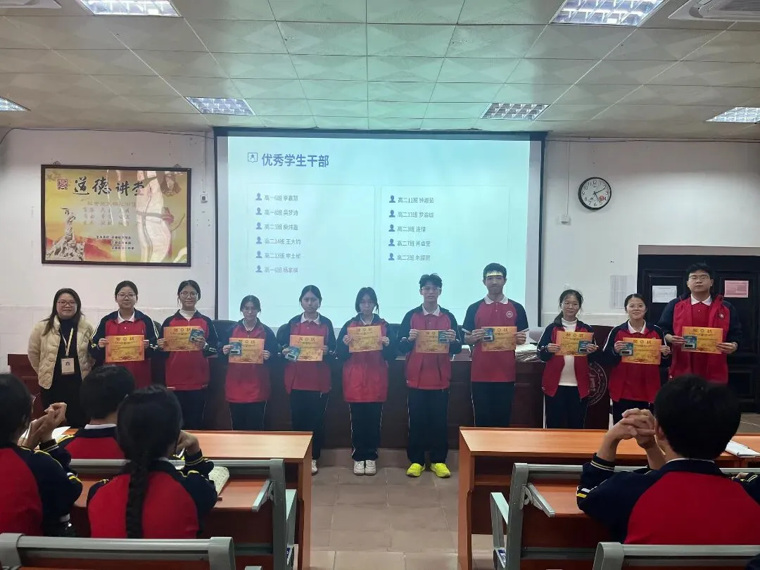 大会对本学期表现突出的部门与个人进行了表彰,学生发展中心曾健仪主任、张世豪副校长作为颁奖嘉宾。“优秀学生干部”“优秀学生干事”“学生会积极分子”……掌声与奖状背后,是无数个午休时间的策划、晚自习后的忙碌、活动前后的奔波。