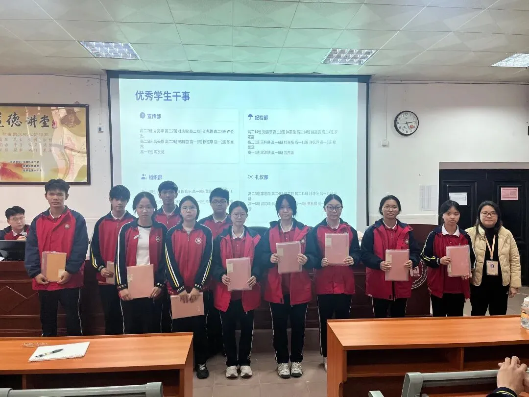 组织部: 高二4班陈悦 高二7班霍嘉华 高二5班曾圣茹 高一6班龙焯烯 高二14班刘华烨 高一9班韩欣欣纪检部: 高二11班王嘉炜 高二13班宋玉安 高一9班罗云骞 高二2班黄智欣 高一13班陆芮琪 高二9班莫健英 高一7班邱泳仪 高二7班胡嘉睿 高一5班张雨娜 高二12班黄紫妍 高二8班陈玉棠 高二5班孟琳