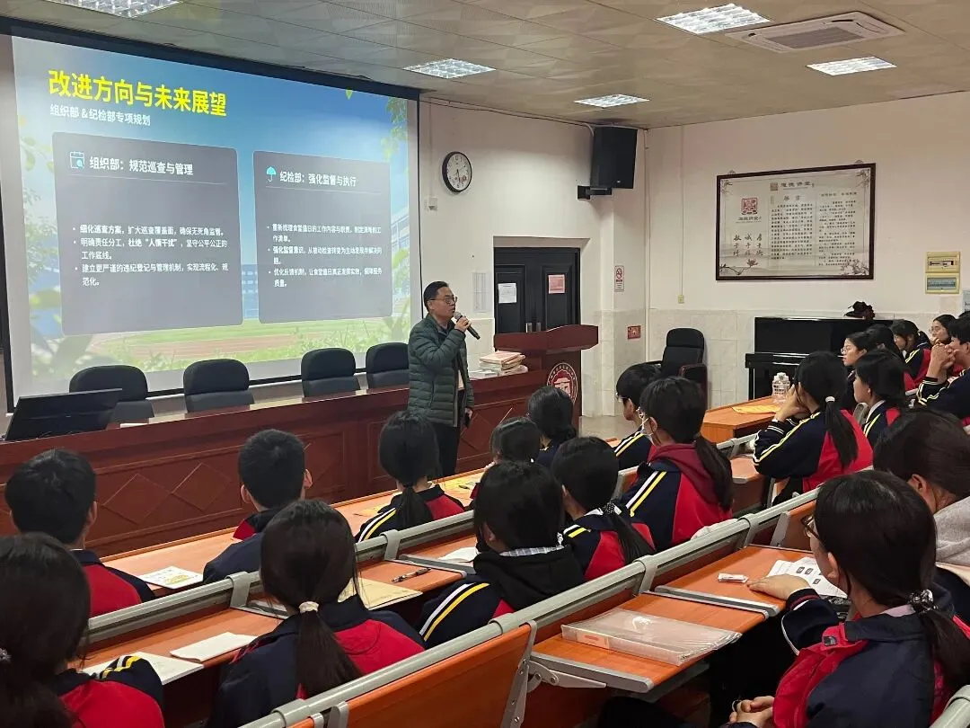 各部门在后续工作中积极整改、精准发力。组织部要进一步细化巡查方案,扩大巡查覆盖面,明确责任分工,杜绝“人情干扰”,坚守公平公正的工作底线,建立更严谨的违纪登记与管理机制;纪检部要重新梳理食堂值日的工作内容与职责,强化监督意识,主动发现并解决问题,让食堂值日真正发挥作用;礼仪部要创新工作方式,除了常规检查,可通过主题宣传、案例讲解等方式,引导同学们自觉规范仪容仪表,同时提升检查的持续性与细致度;宣传部要在新任部长班子的带领下,加强技能培训,组织伙伴们学习摄影技巧,开展作品交流与点评,提升专业素养,让宣传素材更具质感与传播力。