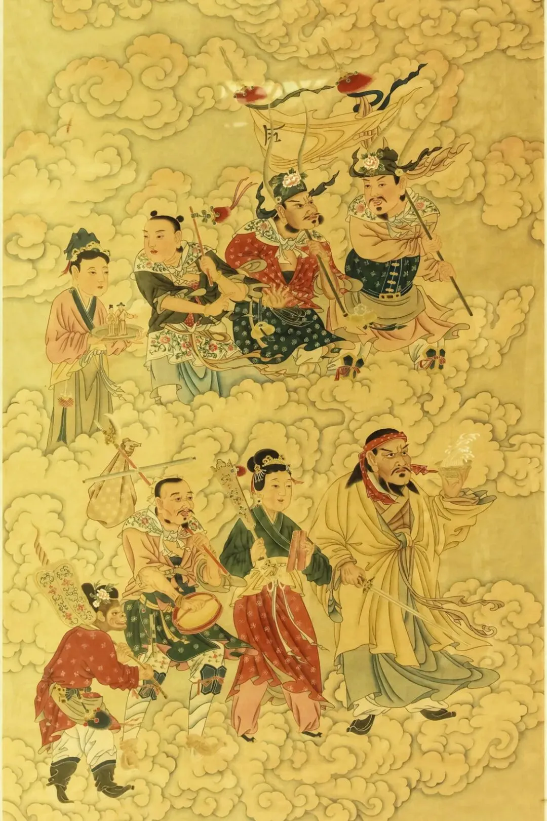 在水陆法会进行时,寺院都会挂起水陆画。有个很有意思的现象,既是水陆画中的六道众生都是朝着一个方向行进,这种表现手法也为水陆画所特有。