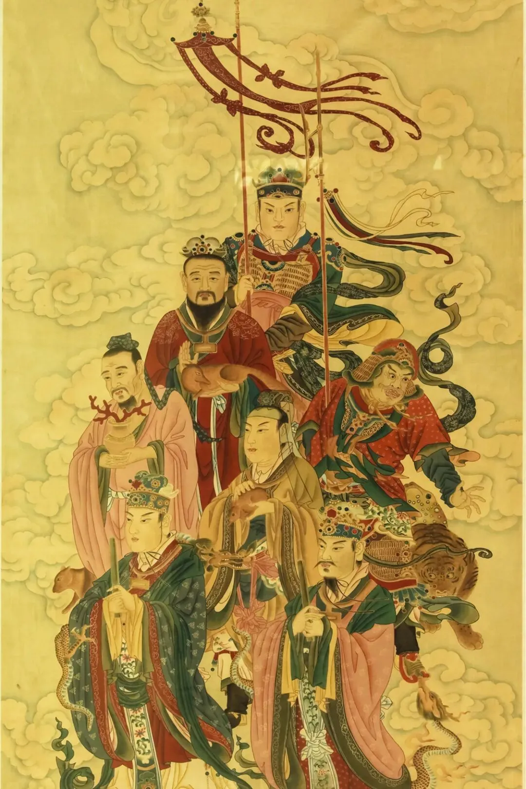 上述的六凡(六道)加上四圣一起,即为十法界中的一切生命体。水陆画即为这十法界的一切生命体造像,以掛像代表法会邀请到的对象。
