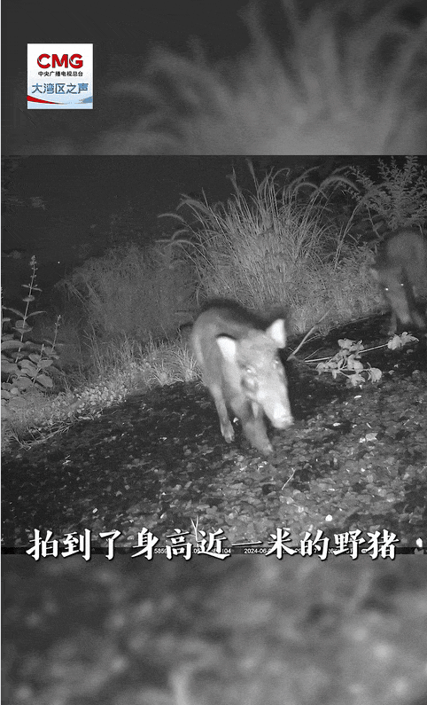 鲲鹏径一号桥红外相机记录下的探头探脑过桥的野猪。图源:大湾区之声