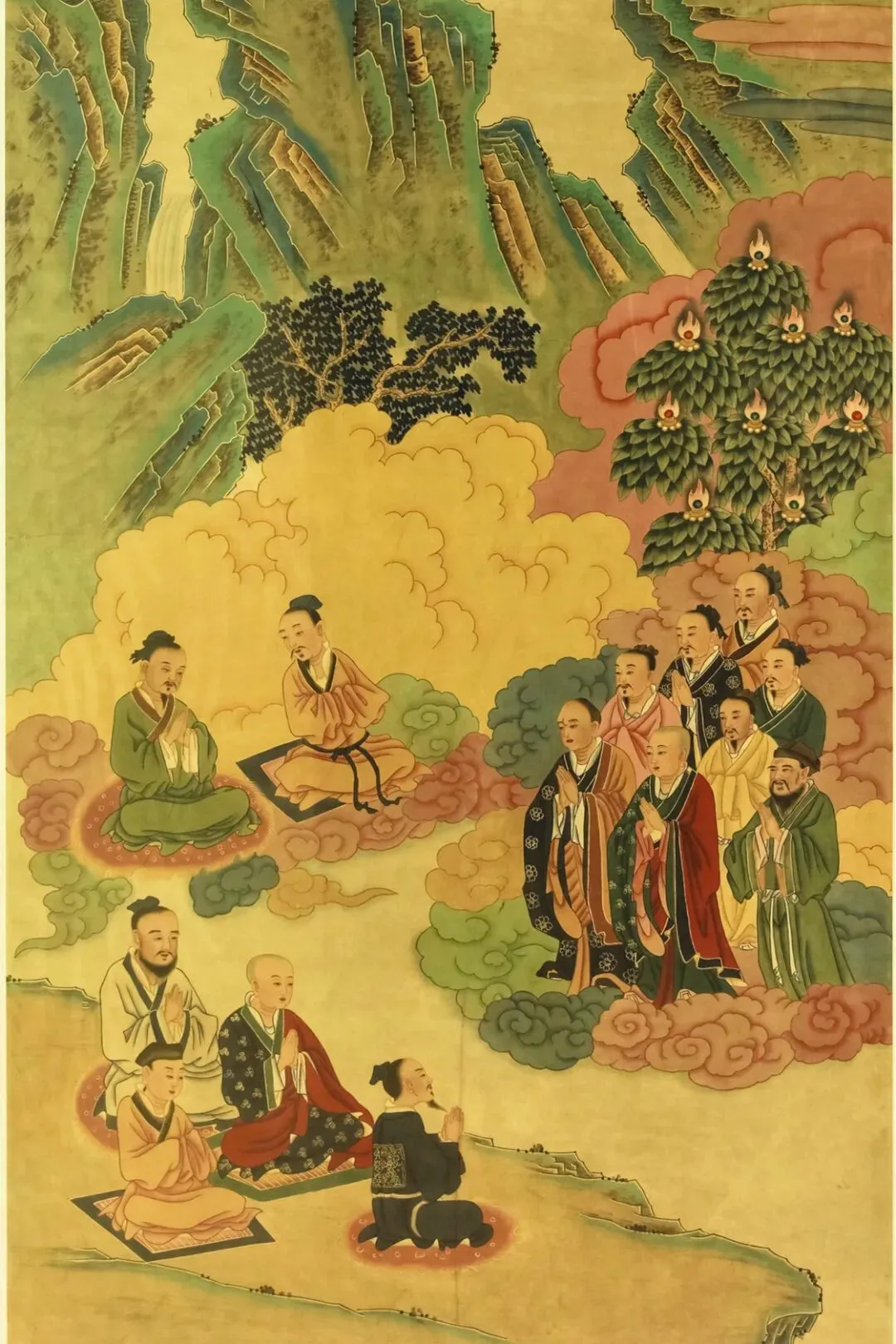 水陆画悬掛于法会内坛,代表法会所邀请的对象即为宇宙中过去、现在、未来的一切众生,其中亦包括六道众生(六凡)。
