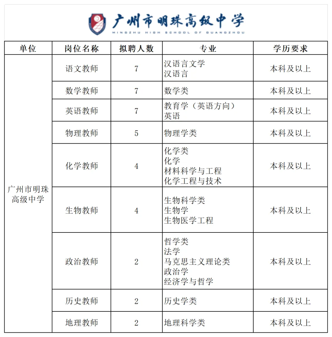 3.本科及以上学历,专业符合表格要求,相关证件齐全(本科及以上学历证、学士及以上学位证、高级中学教师资格证、职称证、普通话证、获奖证书等);
