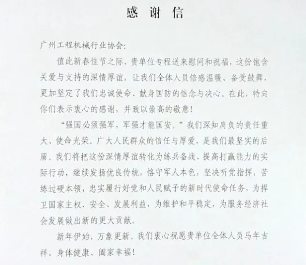 此次活动进一步巩固了军民鱼水深情,展现了社会组织爱国拥军、支持国防建设的责任担当。据统计,广州工程机械行业协会已经连续三年在春节前夕组织开展慰问现役部队活动。今后,协会将继续发挥桥梁纽带作用,积极引导会员企业履行社会责任,以实际行动支持军队建设。