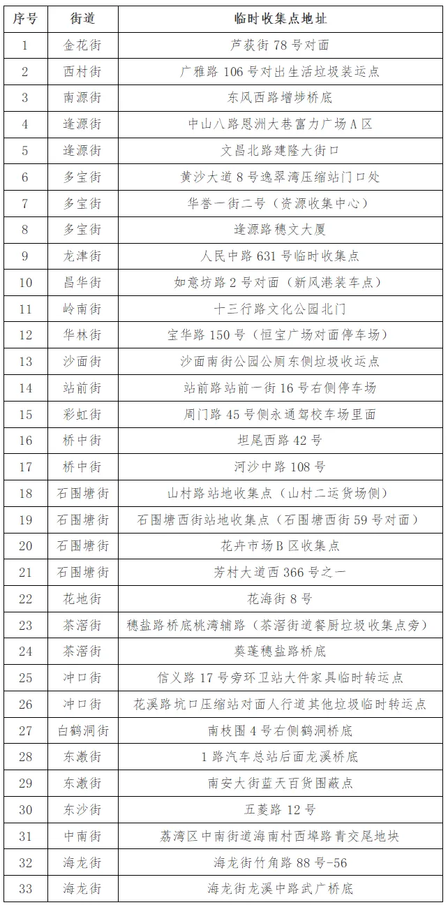 废弃年花年桔临时收集点信息