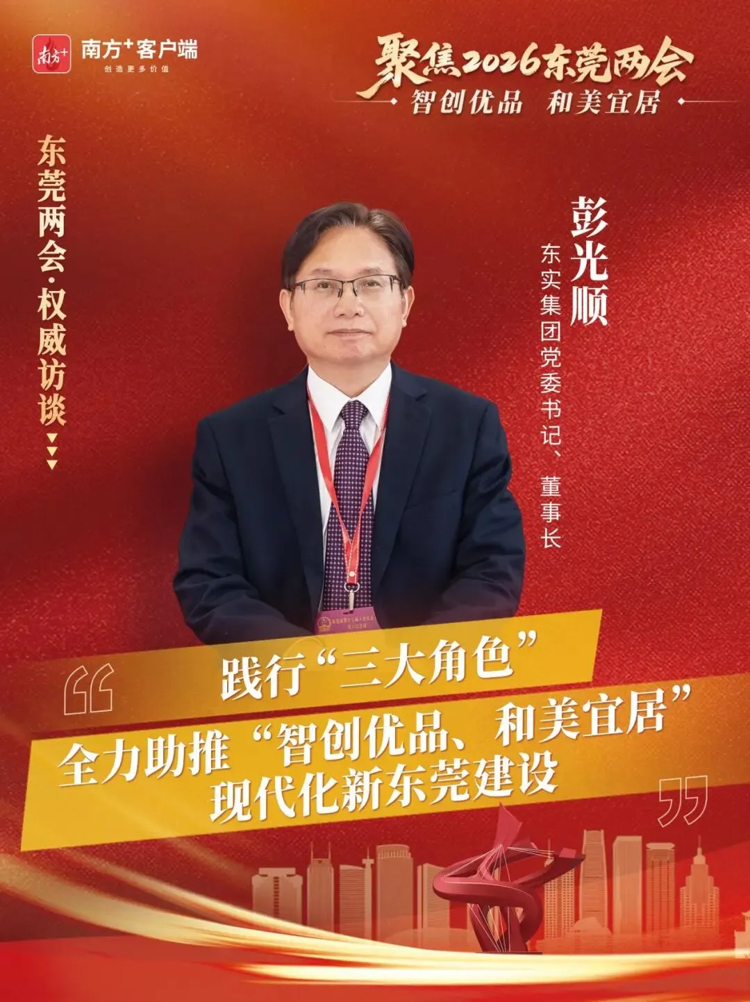 2月4日上午,东莞市第十七届人民代表大会第六次会议在会议大厦开幕。东实集团党委书记、董事长彭光顺做客南方+直播间,围绕市属国企在“智创优品、和美宜居”现代化新东莞建设中的使命与行动接受访谈。他表示,东实集团将聚力发展四大主业,全面践行“城市发展运营商、综合能源服务商、产业投资运营商”三大角色,为助推“智创优品、和美宜居”现代化新东莞建设贡献新的国企力量!