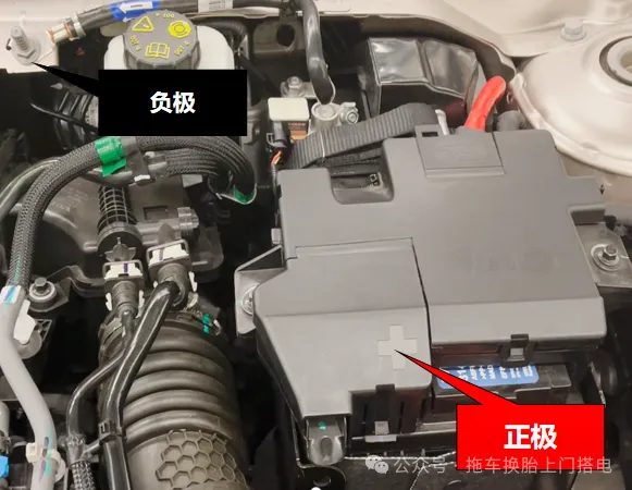请技师严格按照图片所示位置进行正极、负极接线前请技师确认搭电位置是否正确