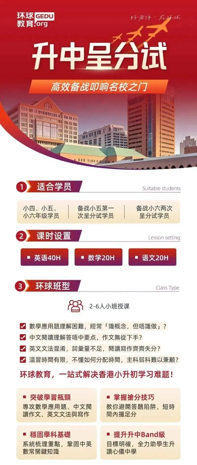 深圳环球国际部为香港小升初学生提供语文、数学、英语全方位备战课程,帮助学生突破学习瓶颈、掌握应试技巧,提升Band级,冲刺心仪中学。