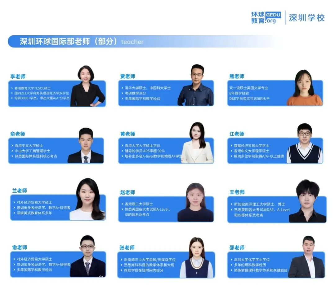 深圳环球国际部是隶属于环球教育集团的高端子品牌,专为有志于申请精英大学、全球QSTOP100大学的中学生设计,抓紧中国学术学习优势进行合理化课程组合。