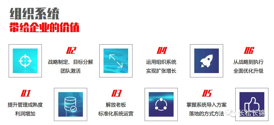以系统技术为主导,产品注重研发,实战落地,专注务实,旨在帮助企业建设完善的管理系统,让中国企业更受尊敬!长松咨询创始人贾长松老师说:
