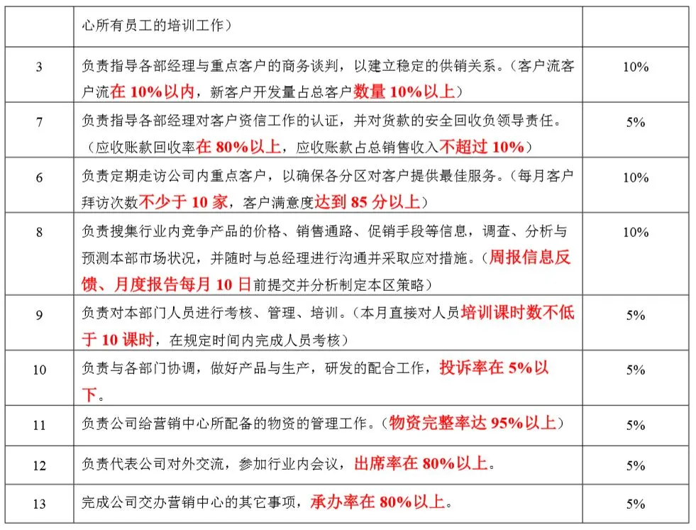 | 1、考核指标设立:要什么考核什么,关键在于如何提取考核指标。 2、量化考核业绩:(绩效考核不等同于业绩考核,小用看业绩,中用看能力,大用看品行。很多企业都无法标准化和量化能力和品行考核指标) 3、考核方法:不同公司阶段适用的不同方法。KPI考核要点 4、企业目标责任书的签订:如何绑定利益共同体,把公司的目标变成干部的目标 |