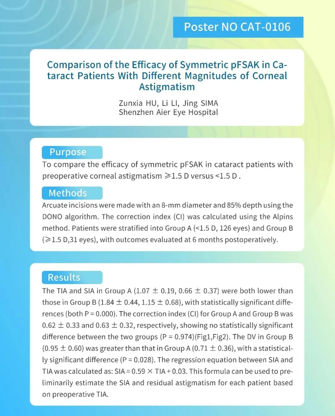 报告主题:《对称pFSAK 矫正白内障患者角膜散光的效果评估》