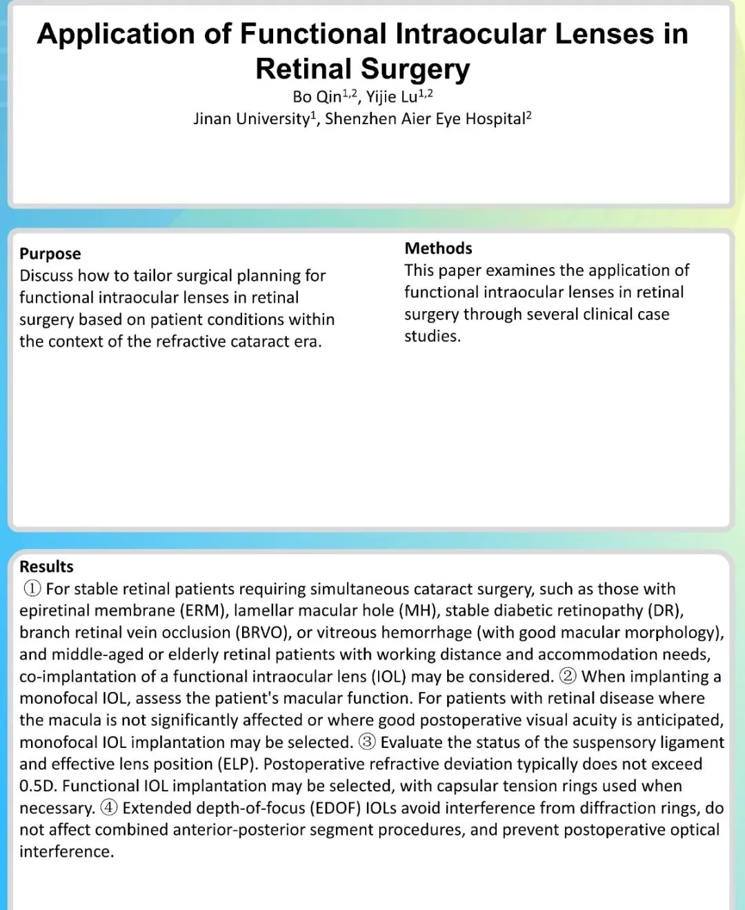 报告主题:《屈光时代下前后联合手术的思考》