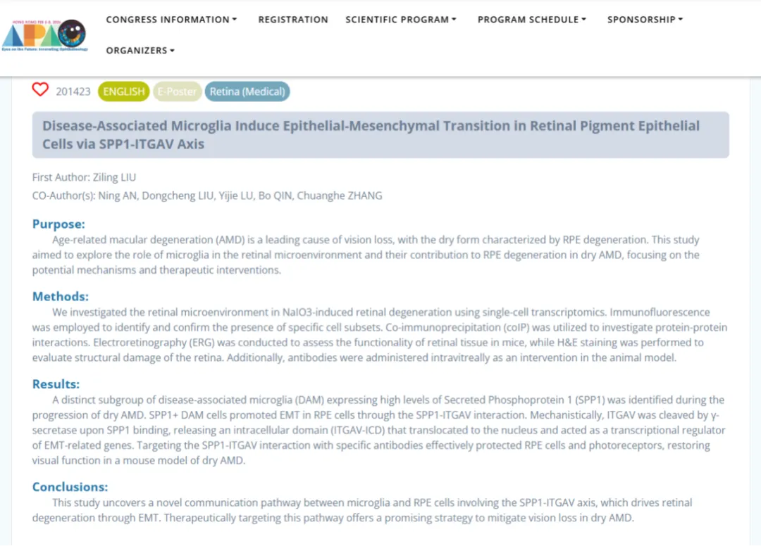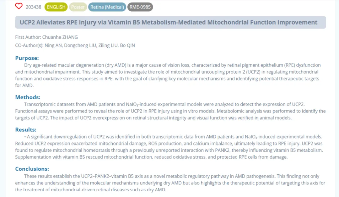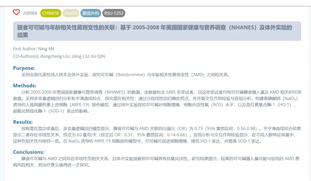 同时,深圳爱尔眼科医院秦波、司马晶、胡尊霞、刘东成、刘子凌、廖洪霞、刘静雯、卢怡洁、王艺淋、安宁、张传鹤等投稿的9份学术壁报成功入选,覆盖眼底病、眼外伤、白内障等多个研究方向,集中呈现了医院在临床科研领域的最新进展。作为学术交流的重要形式,壁报展示将助力团队与全球眼科专家开展面对面研讨,碰撞学术思想,拓宽科研与临床视野。