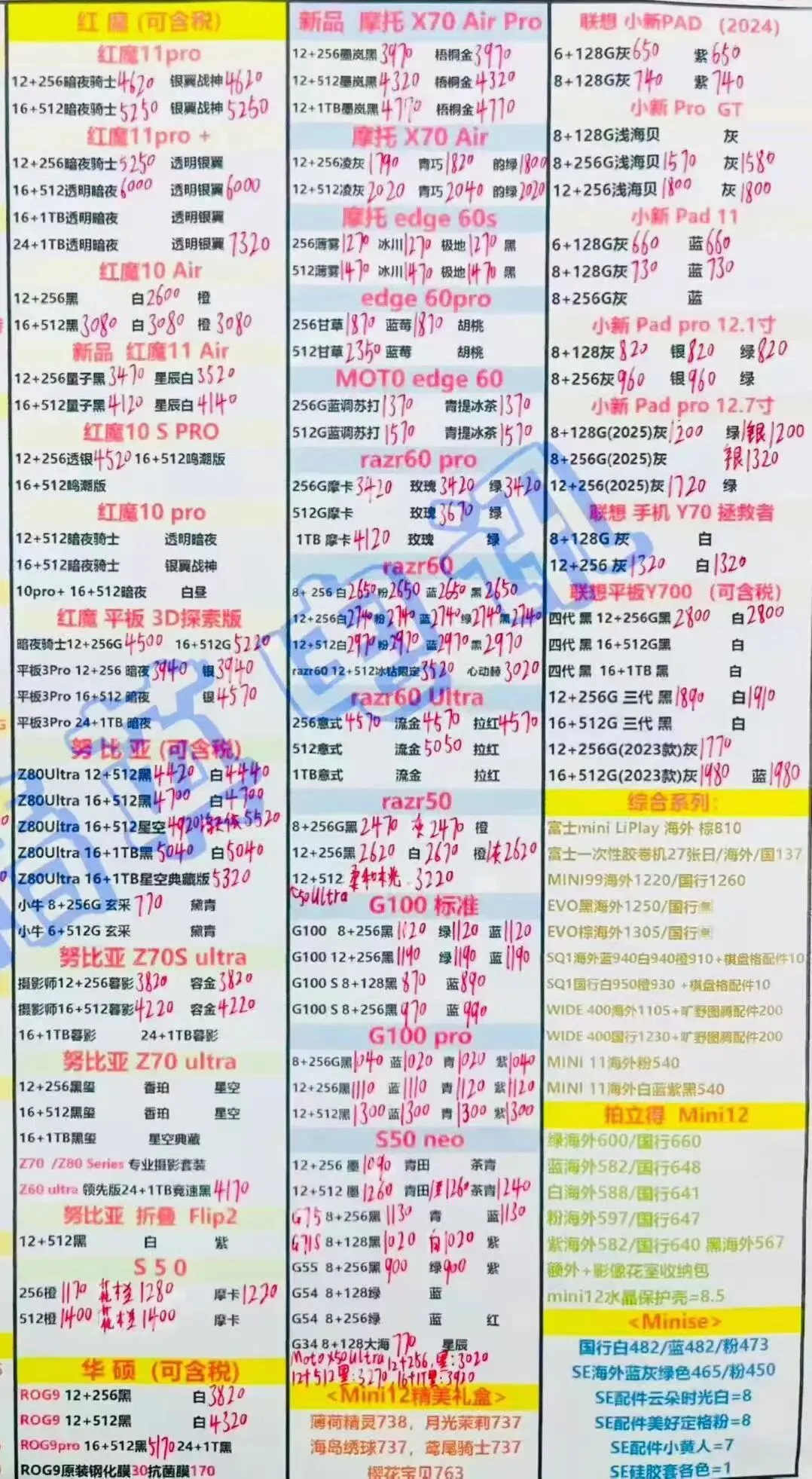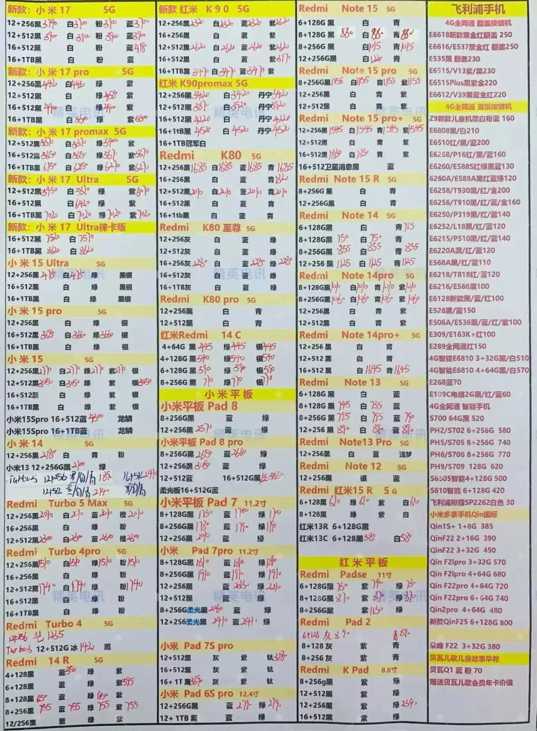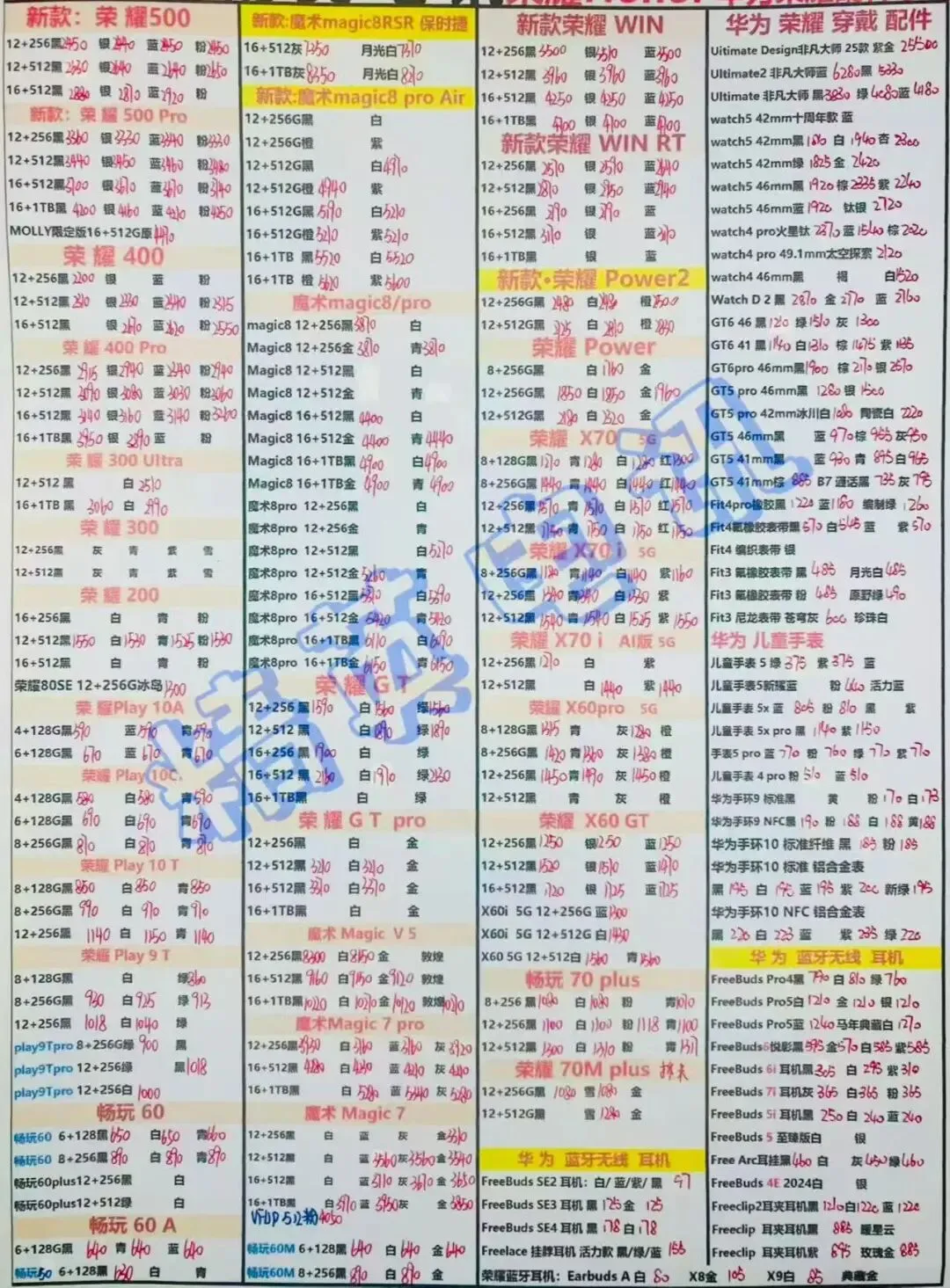 最新全新原封国行华为荣耀小米一加红魔等手机批发报价