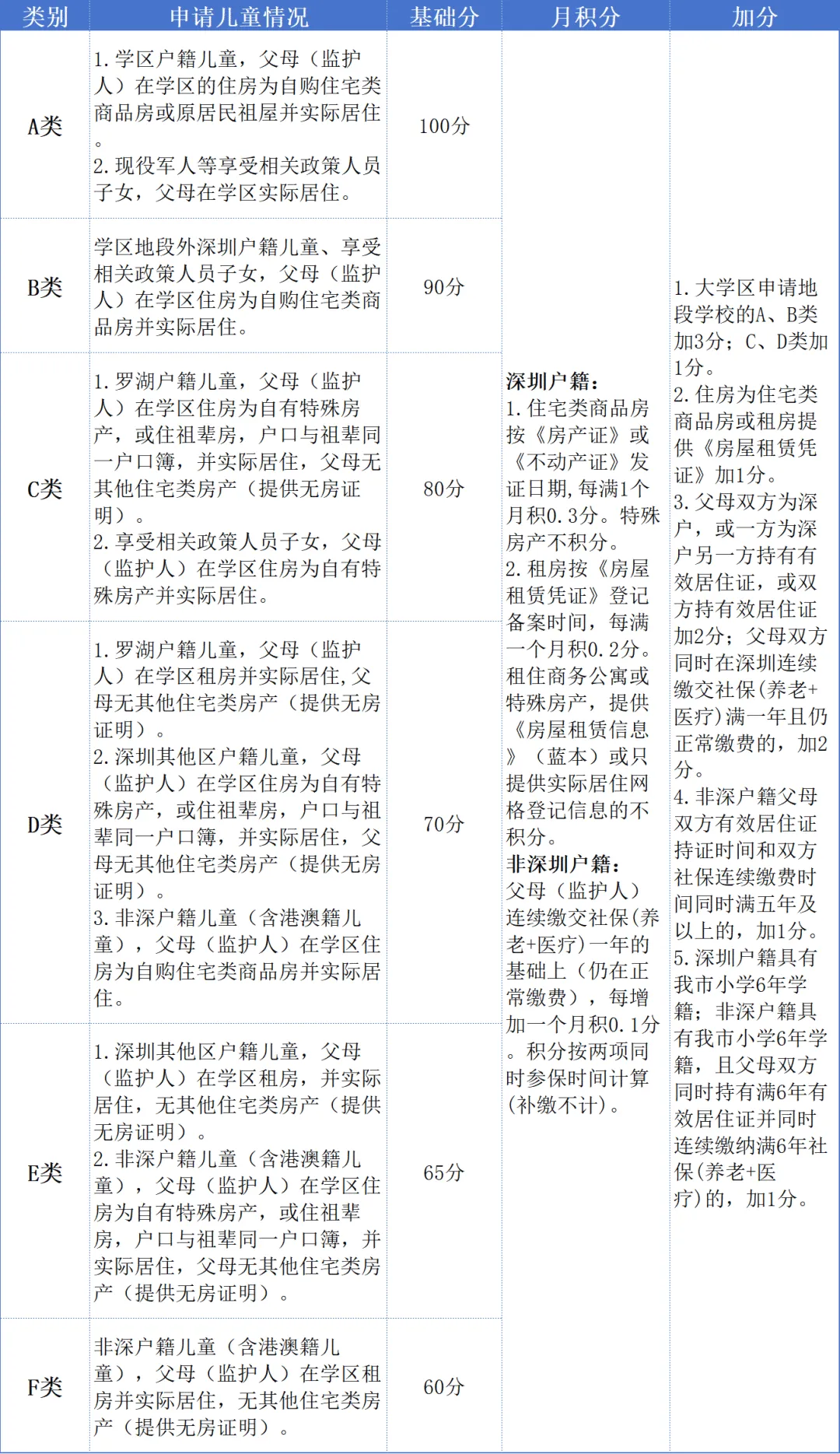 非深圳户籍,父母或其他法定监护人有学区特殊住房或学区租房。基础分为60分。