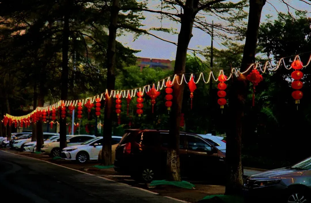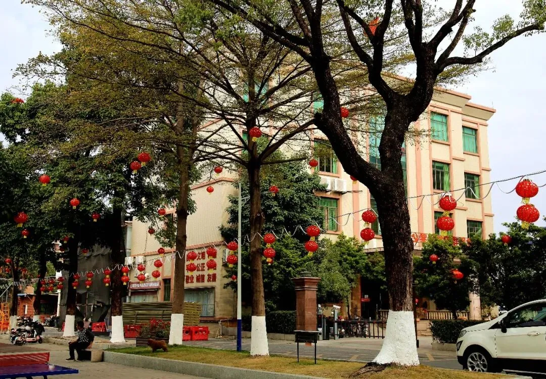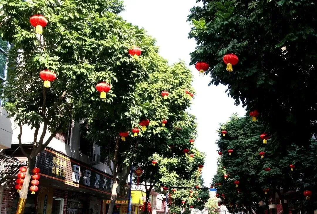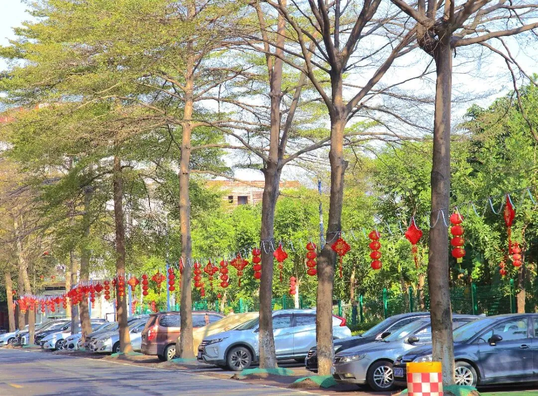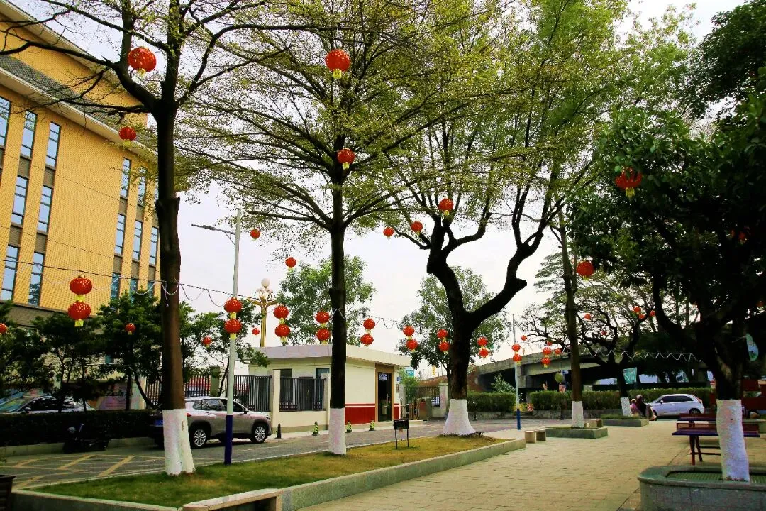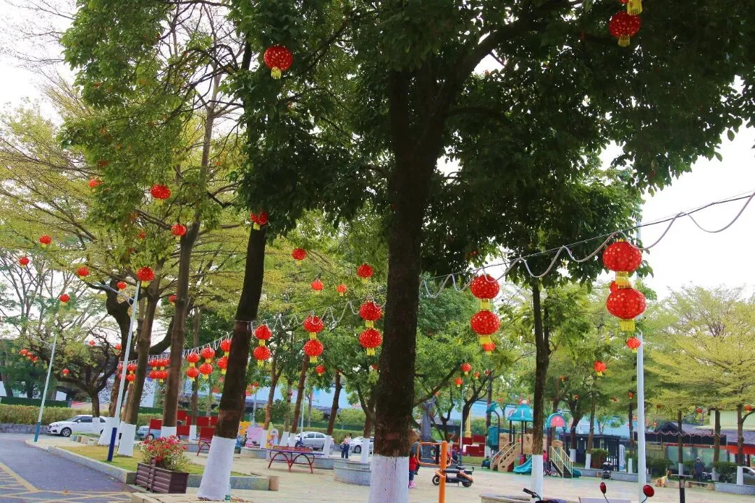 踏入黎滘村,一个个高高挂起的红灯笼映入眼帘,浓厚的新春喜庆感扑面而来。公园内的每一棵树都挂满了红彤彤的灯笼,喜庆融融。