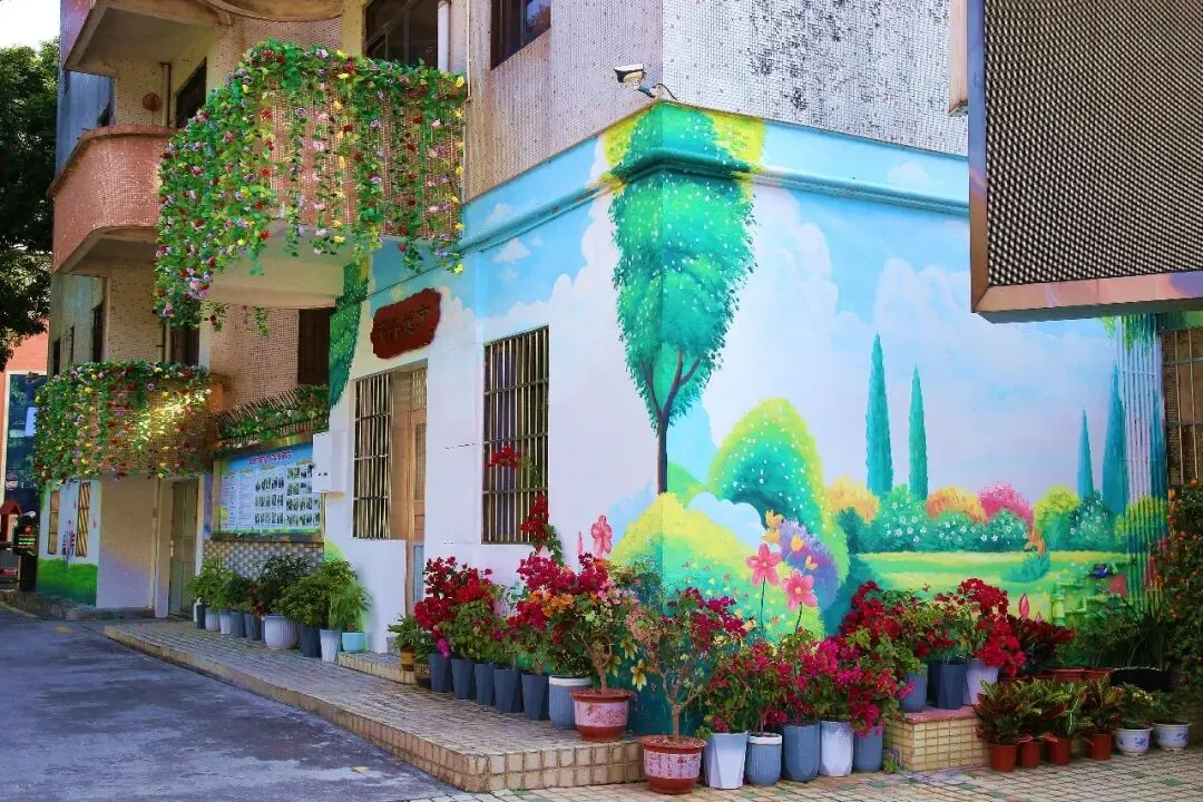 旧街巷被清新的彩绘与鲜花装点,藤蔓垂挂在楼墙,花簇摆于门前,色彩斑斓的墙绘让整条街充满治愈的新春气息。