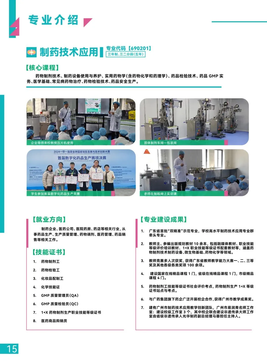·办学成果:学校先后被评为广东省普通中等专业学校文明校园、粤港澳大湾区教育质量评价 “特色学校” 等。制药技术和药物分析技术是广东省双精准示范专业,多个专业为广东省重点专业。