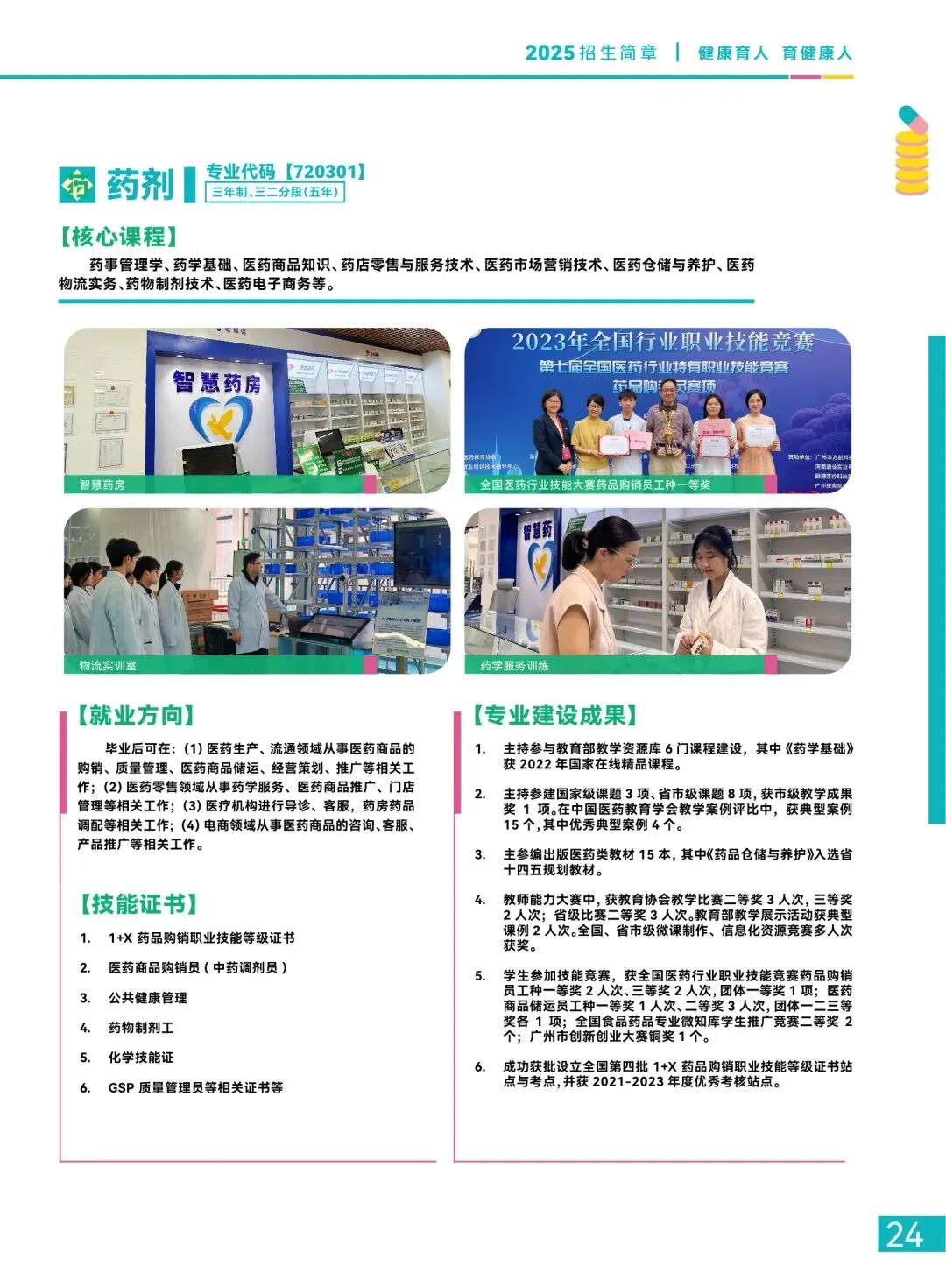 ·升学与就业:学校与广药集团等 100 余家企业合作,毕业生就业率连续多年超 97%,对口就业率达 97.37%。同时搭建了多元升学通道,包括三二分段中高职衔接、国际班等,2024 年升学率达 73.83%。