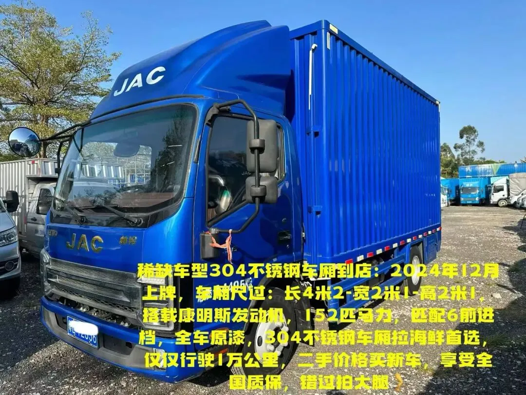 稀缺车型304不锈钢车厢到店:2024年12月上牌,车厢尺过:长4米2-宽2米1-高2米1,搭载康明斯发动机,152匹马力,匹配6前进档,全车原漆,304不锈钢车厢拉海鲜首选,仅仅行驶1万公里,二手价格买新车,享受全国质保,错过拍大腿🦵