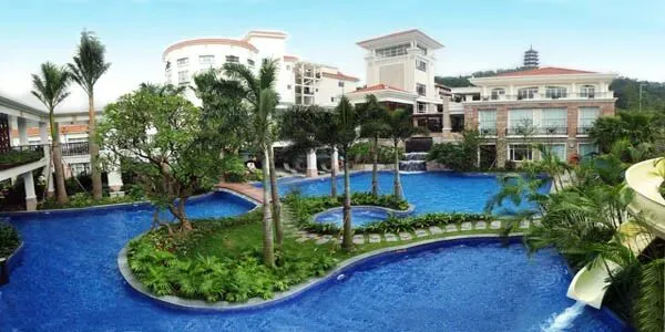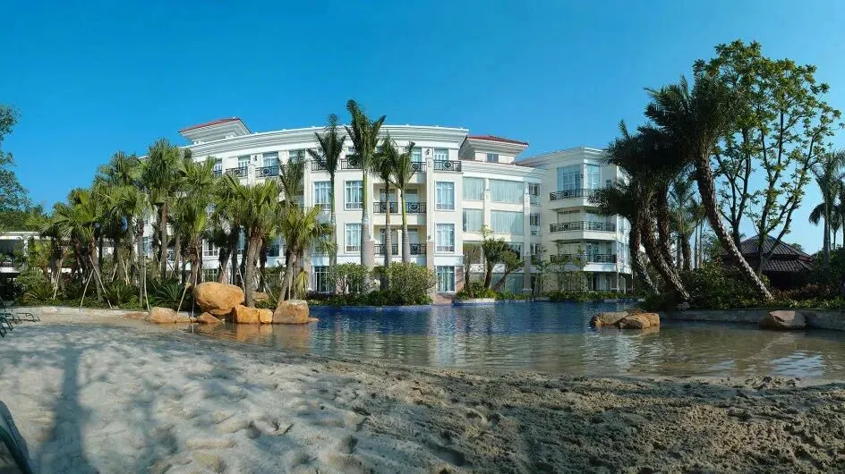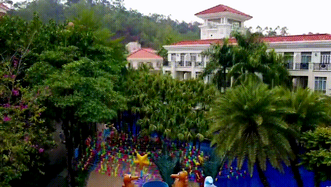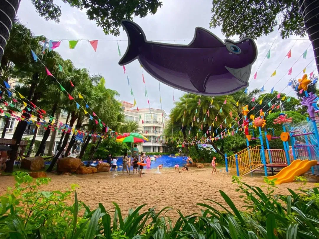 亲水区的客房一共有4层,分为泳池景观房、公园足球场景观房(按当天排房情况来安排房间)需要走出房间下楼到泳池