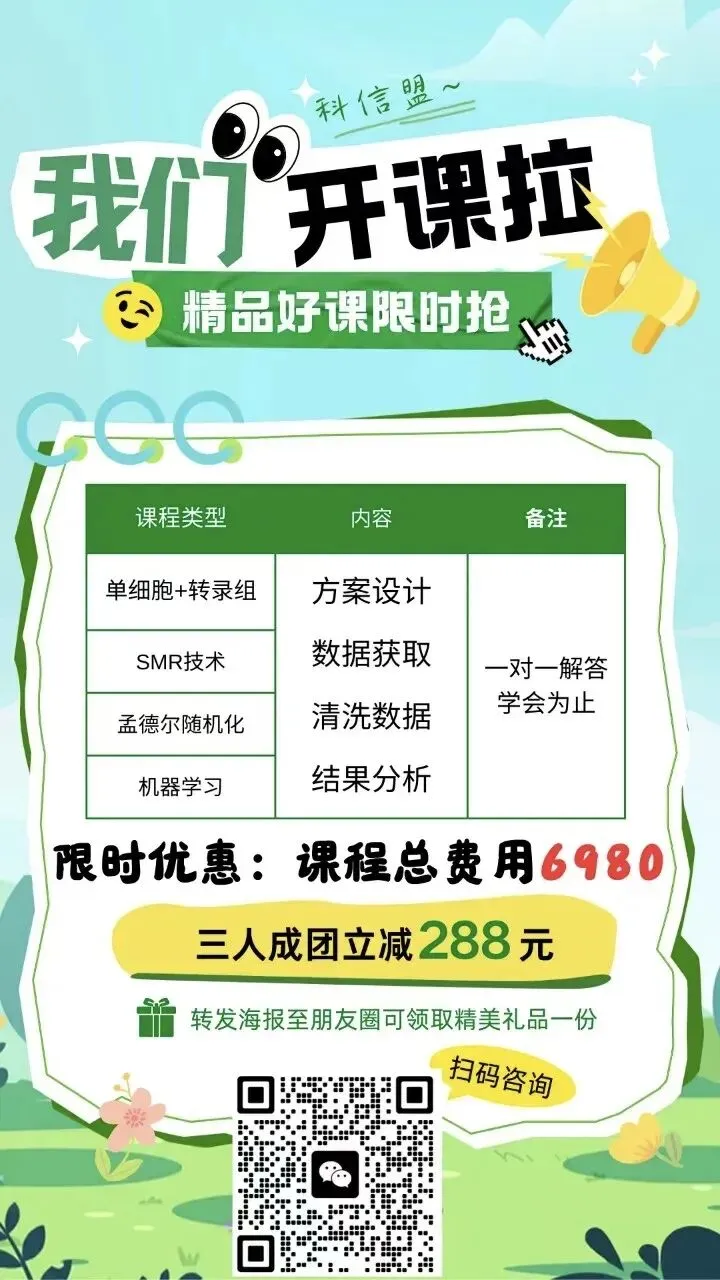 这种“临床问题驱动,数据与实验相互印证”的研究范式,正是当前转化医学研究的典范,既解决了具体临床问题,又揭示了新的生物学机制。如果你也在为课题设计、数据挖掘或发文思路发愁,这类研究路径值得狠狠参考!如果您也想学习机器学习等生信课程内容,为您的科研之路添砖加瓦,可以联系我们团队,老师手把手教您,解答您的疑惑,现在扫码报名,优惠多多哦!!