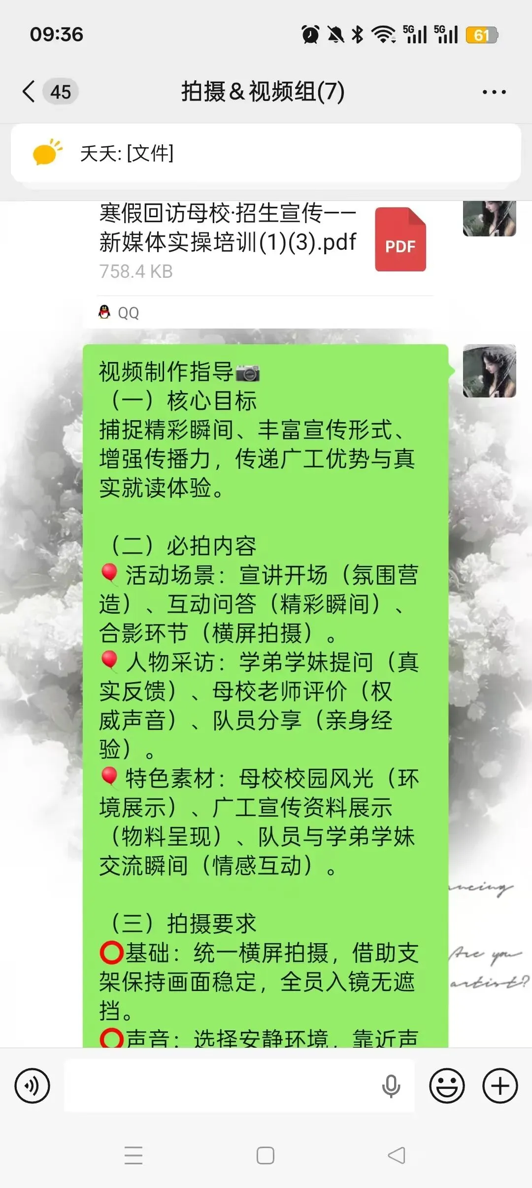 活动前一天,队长在群内发布了详细的活动流程与注意事项,明确了从宣讲准备、入校布展到收尾离场的各环节时间节点,并提醒大家注意安全、着装与通讯规范,确保所有成员清晰知晓活动安排。