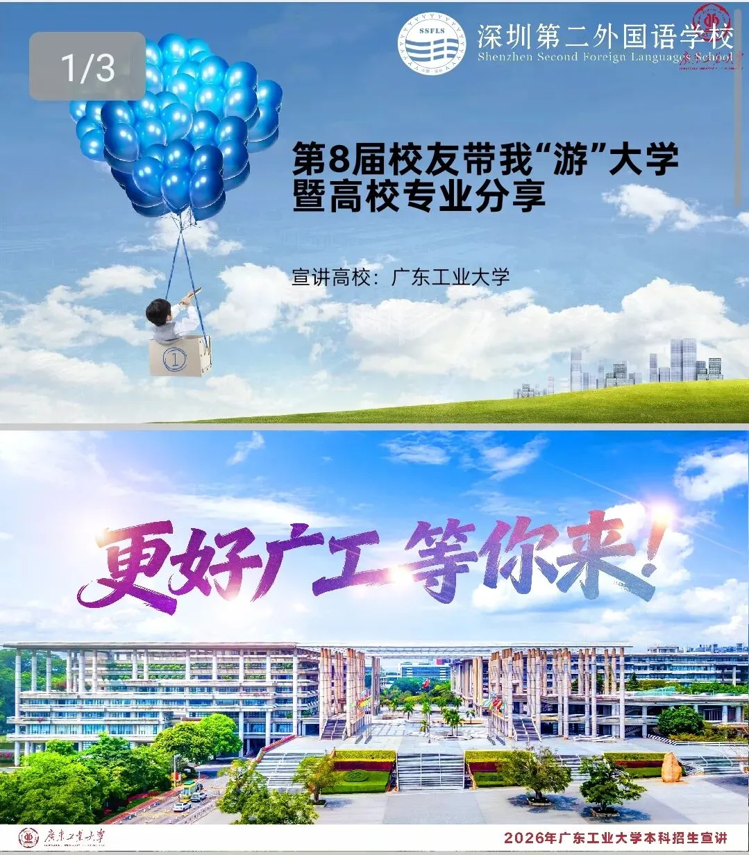 2026年1月28日下午,一支由11名广东工业大学学生组成的寒招队伍回到母校深圳第二外国语学校,参加该校第8届学长带我“游”大学活动。