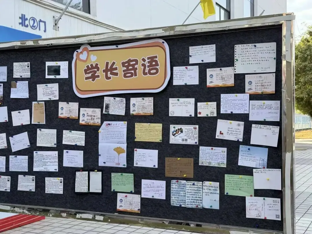 寒招成员们提前在墙上写下了温情的寄语与诚挚的祝福,这些祝福语寄托了学长学姐们对二外前进力量的深深祝愿。这些祝福卡片一贴在墙上瞬间就吸引众多二外学子的目光。希望这些祝福可以鼓励着他们勇往前行!