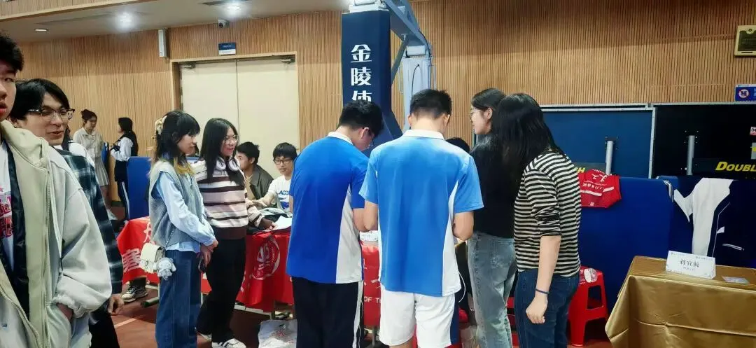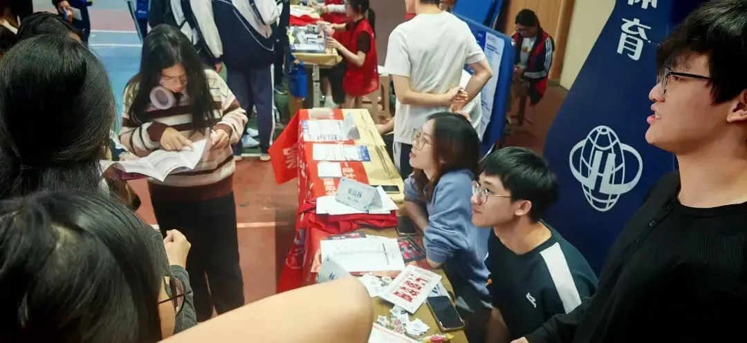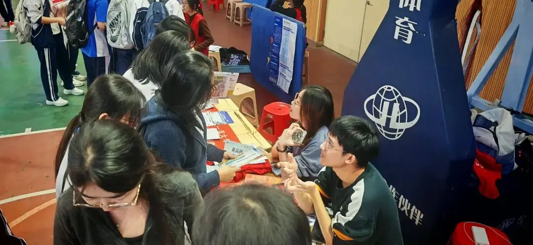 活动一开始,我们的摊位逐渐被好奇的学弟学妹们包围。队员们也十分热情,不仅在摊位上答疑,还有拿着传单整个场区发放的。聊完你的聊你的,学弟学妹们接踵而至,我们的摊位可以说是“火爆了”,可见经过几届的努力,广工在二外的知名度打开了。队员们毫不吝啬地分享自己的专业,展现大学生活,鼓励学弟学妹们。我也希望通过这次活动这次交谈,世界不止局限于高考之下,希望他们早早树立目标,未来有更精彩的天地等待他们!