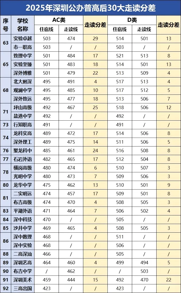 但这个方法藏着致命风险:部分学校的分数线会 “突然暴涨”。比如 2024 年,深圳有 2 所公办普高分数线比前一年涨了 32 分,排位直接跃升 10 多位 —— 如果正好选了它们当保底,孩子发挥失常的分数,根本够不着这 “涨上去的线”。