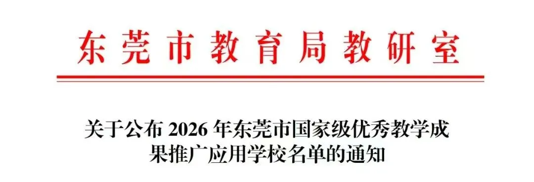 热烈祝贺东莞市大岭山新风中学成功入选2026年东莞市国家级优秀教学成果推广应用学校!