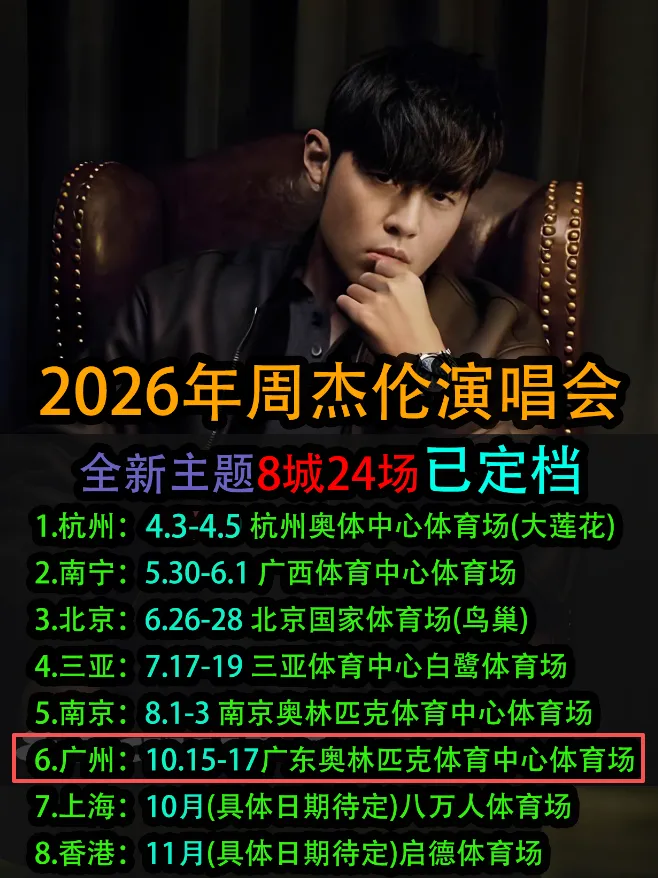 此消息为各媒体及部分城市官宣的消息整合,每个城市为3场,最终城市安排或有调整,具体请以杰威尔官方公告为准。