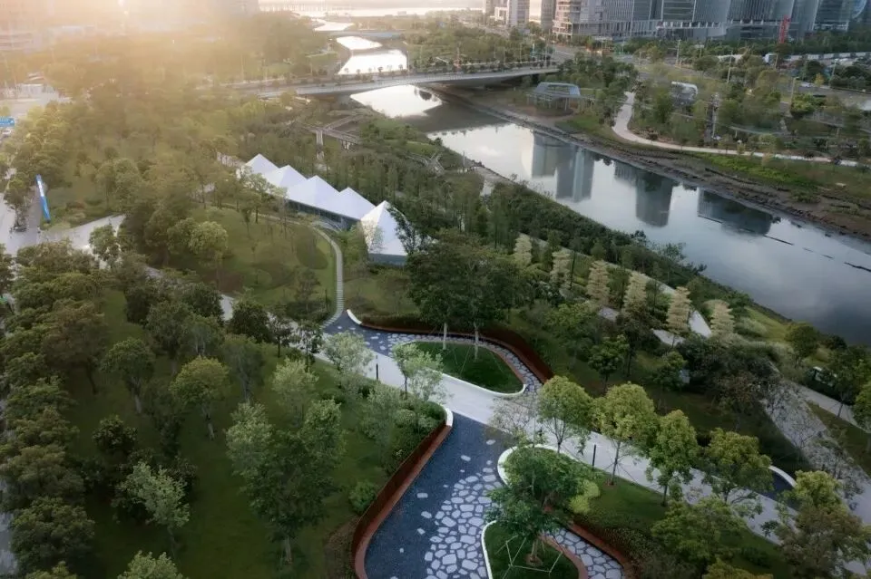 JCFO从2010年赢得深圳前海水城城市设计(2010年国际竞赛)到桂湾河公园建成(2020 ASLA 荣誉奖),是景观都市主义理论从城市设计到大型绿地公园的完整呈现的一次尝试,hcs团队传接了景观都市主义的思想,试图在具体公园节点:公园驿站层面,延伸并进一步实体化景观都市主义思考的意义。