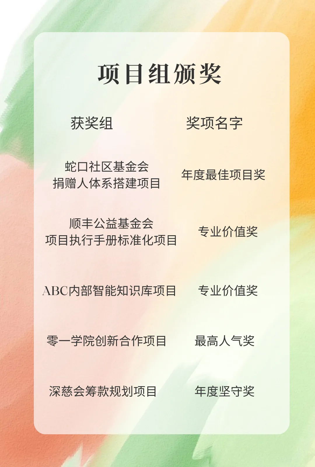 感谢专家们的卓越贡献和管理团队的辛勤付出,祝贺获奖的项目组!