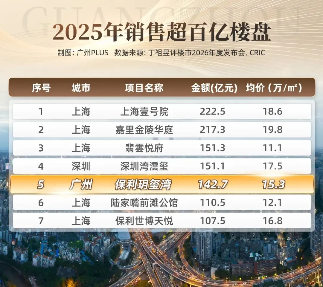 2025年全国7个百亿楼盘,广州的保利玥玺湾位列其中。