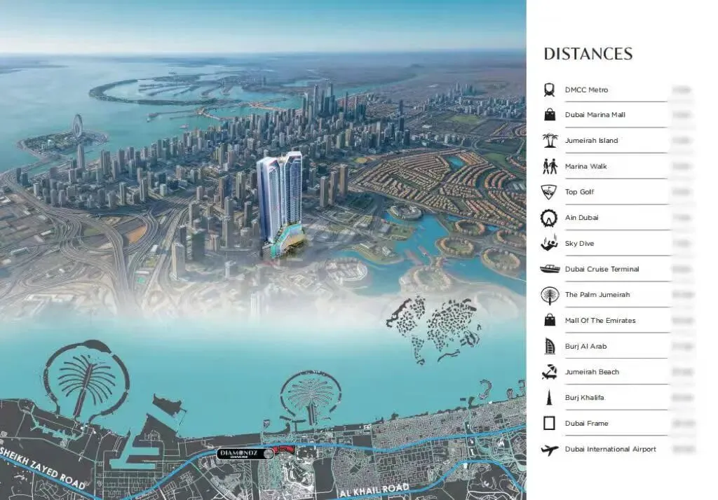 Diamondz位于朱美拉湖塔区的Uptown区域,周边环绕着迪拜码头购物商场、朱美拉岛、滨海步道,距离棕榈岛、阿联酋购物商场和帆船酒店等知名建筑开车即达。