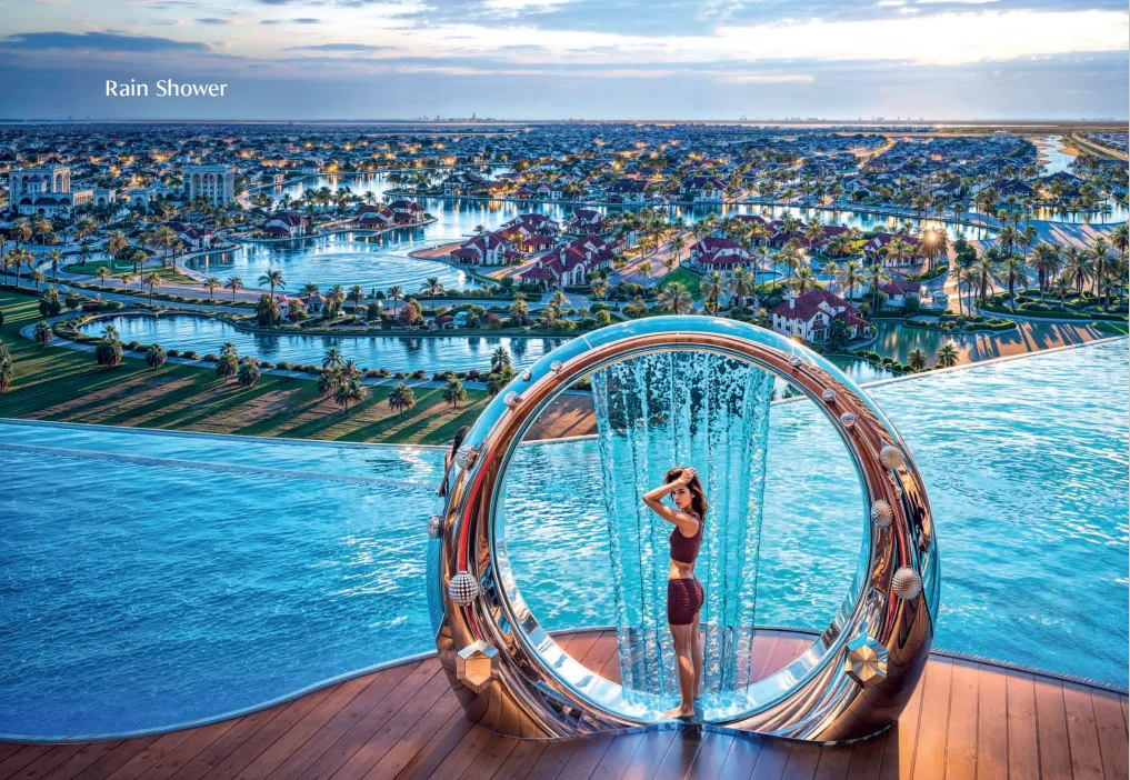 休闲层面,无边泳池、空中按摩浴缸、屋顶泳池酒吧等设施尽显奢华,空中观景台与露天影院满足品质生活追求;健身房、带指导的瑜伽台与篮球场、攀岩墙等多元选择,适配不同运动偏好;亲子与家庭需求同样被考虑到,设有室内外儿童游乐区、儿童日托所,让家庭居住更安心;社交与生活配套方面,专属派对厅、烧烤区、美容院等一应俱全,覆盖高端生活的各类场景,彰显宜居属性与高端定位。