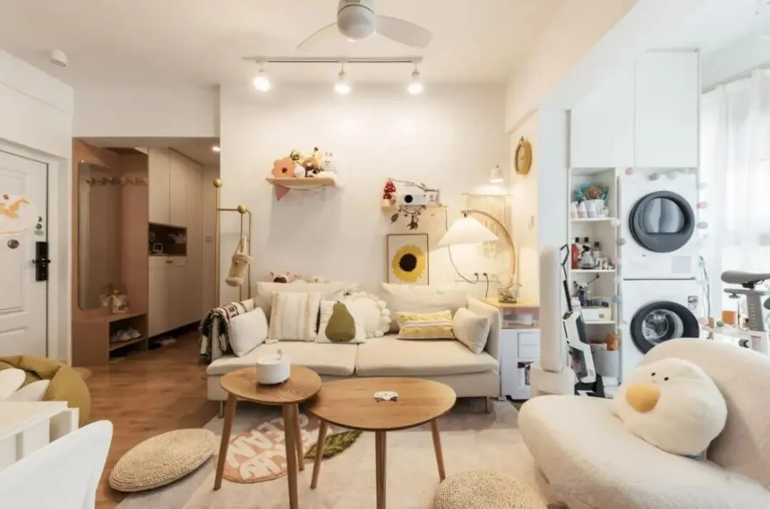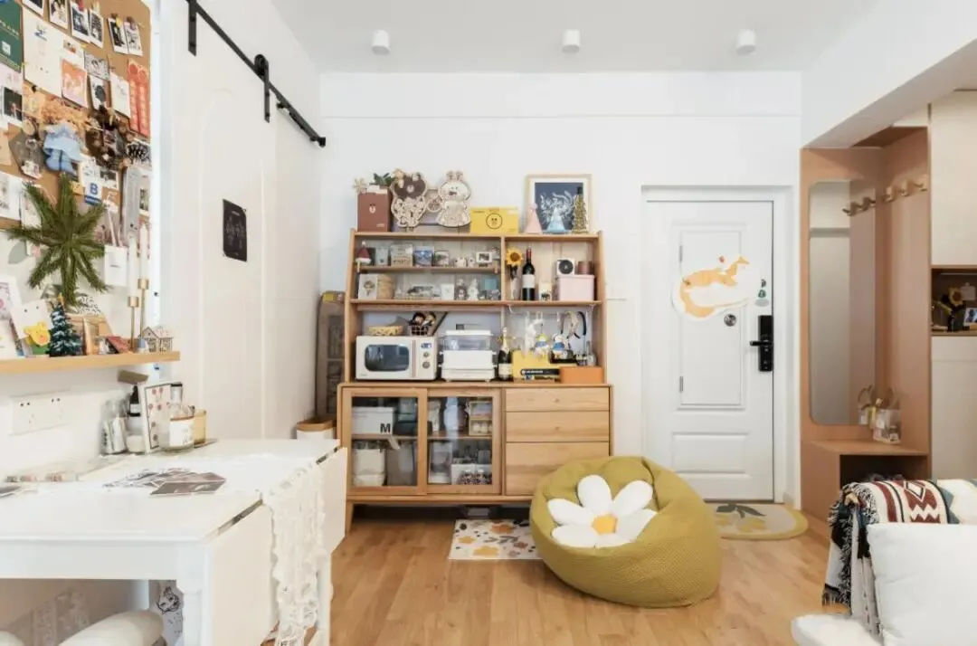 相比,屋主这样杂物众多的家,才是普通人生活的常态,一进屋,满眼的踏实感和温馨感。