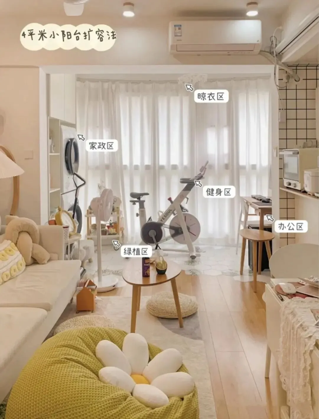 阳台在这套房子中,占有的比例不小,虽然只有4㎡,但也极致利用了起来~