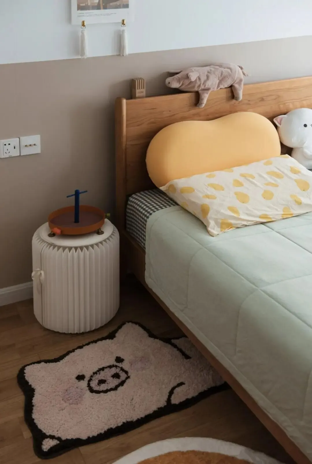 超喜欢屋主家的小猪猪地毯和床头柜,有趣且有设计感。