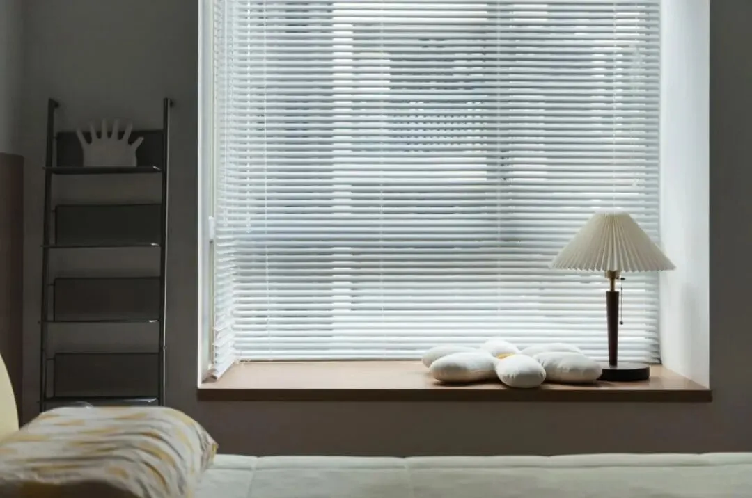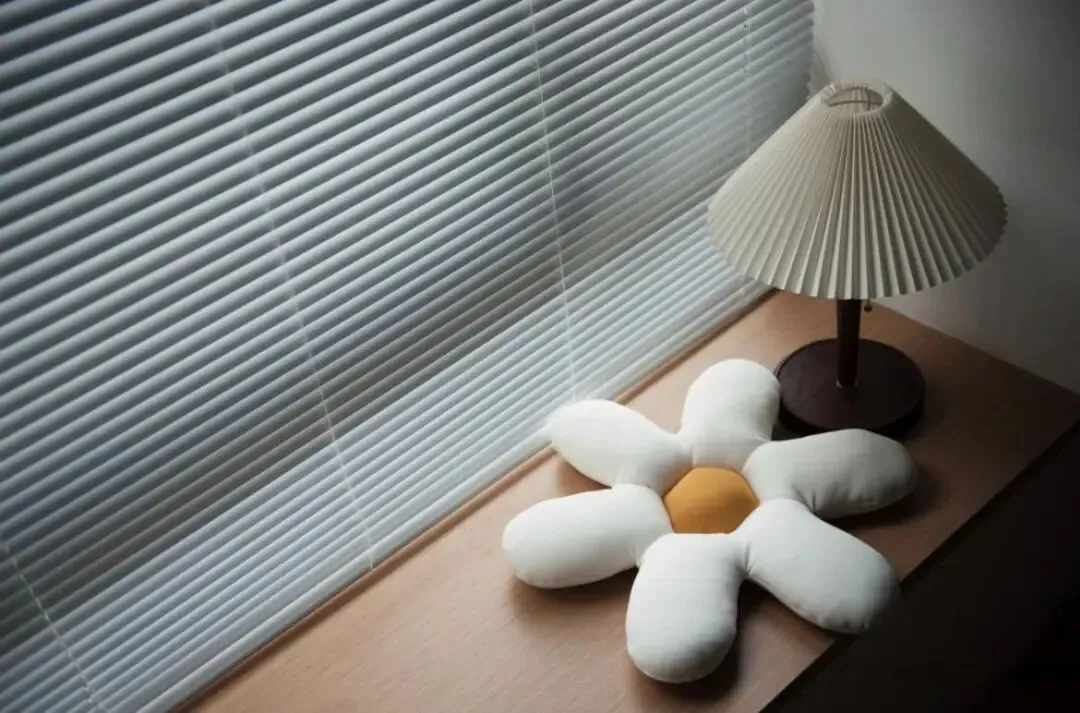 百褶灯罩、百叶窗帘,实木窗台,烘托出了极致文艺温馨气息。