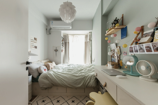 书桌左边则是一整排榻榻米床,储物空间别提多强大了。
