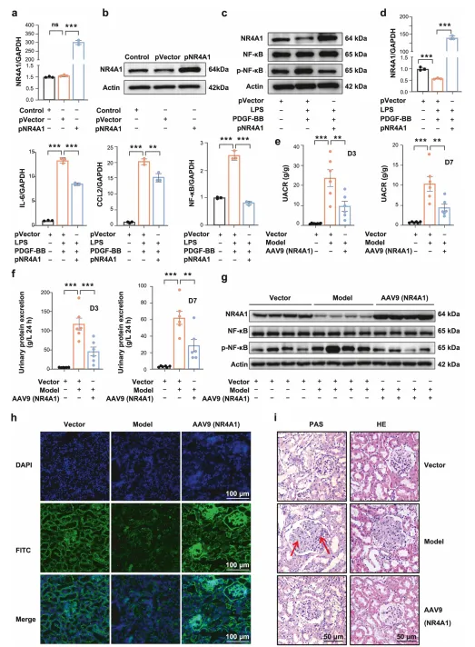 - 动物实验中,AAV9 介导的 NR4A1 过表达可降低大鼠尿白蛋白 / 肌酐比值,减轻系膜细胞增殖和基质沉积,改善肾脏病理损伤。