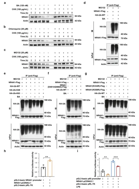 - CHX 追踪实验证实,BA 可延长 NR4A1 的蛋白半衰期,且该效应可被蛋白酶体抑制剂 MG132 模拟,说明 BA 靶向泛素 - 蛋白酶体通路。