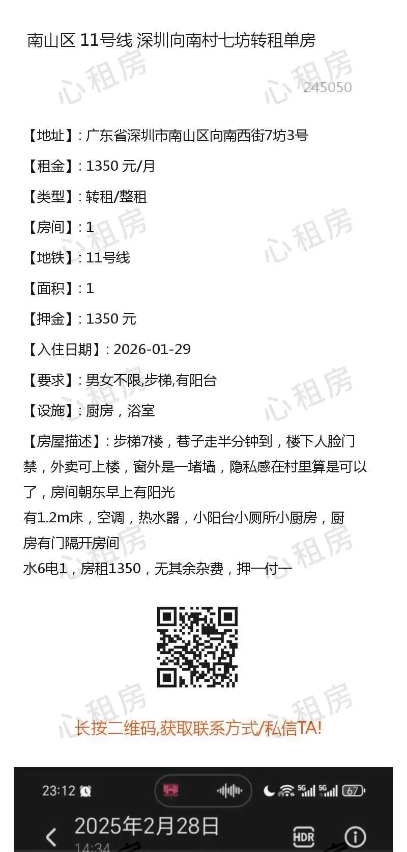 7、近期有人冒充我团线下工作人员,在此特别提醒:本公众号/心租房(homhere.cn)仅提供信息发布,不存在线下工作人员提供服务,请务必谨慎、切勿上当被骗。8、切勿轻信他人,点击他人提供的链接、二维码等,切勿按照他人指示提供验证码、进行转账等操作,谨防上当受骗。9、如遇提供虚假信息、冒充我团工作人员、引诱点击其他网站链接、实施诈骗等行为的,请及时在本公众号对话框里回复:Y,与我团客服联系。 查看不同房源→→深圳心租房公众号