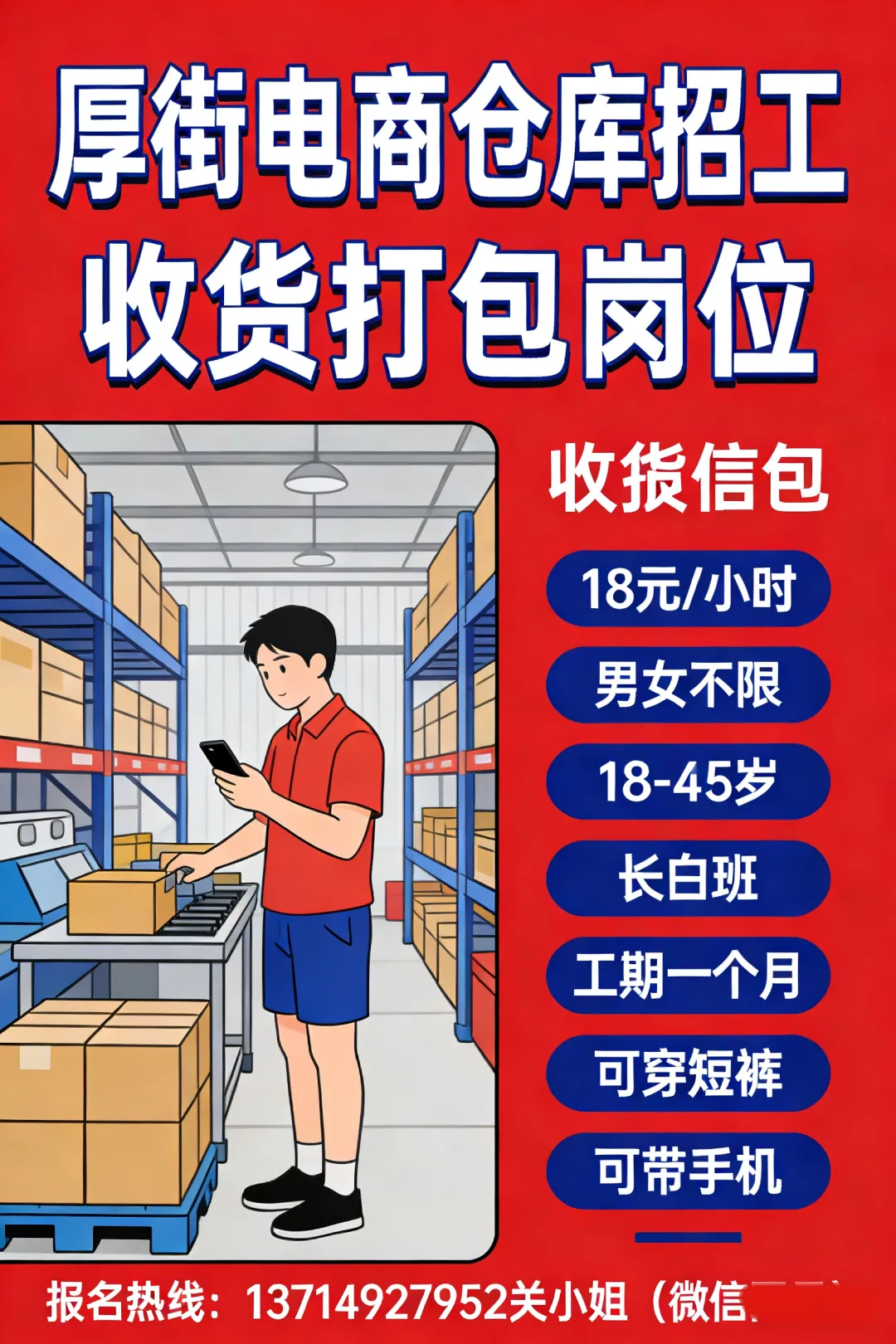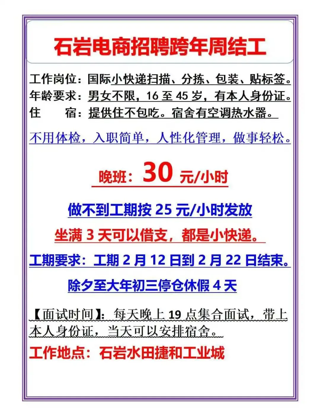 >留年福利炸裂|深圳东莞电商仓库,过年工价30元+/小时+春节留年奖2000,打包分拣岗速来